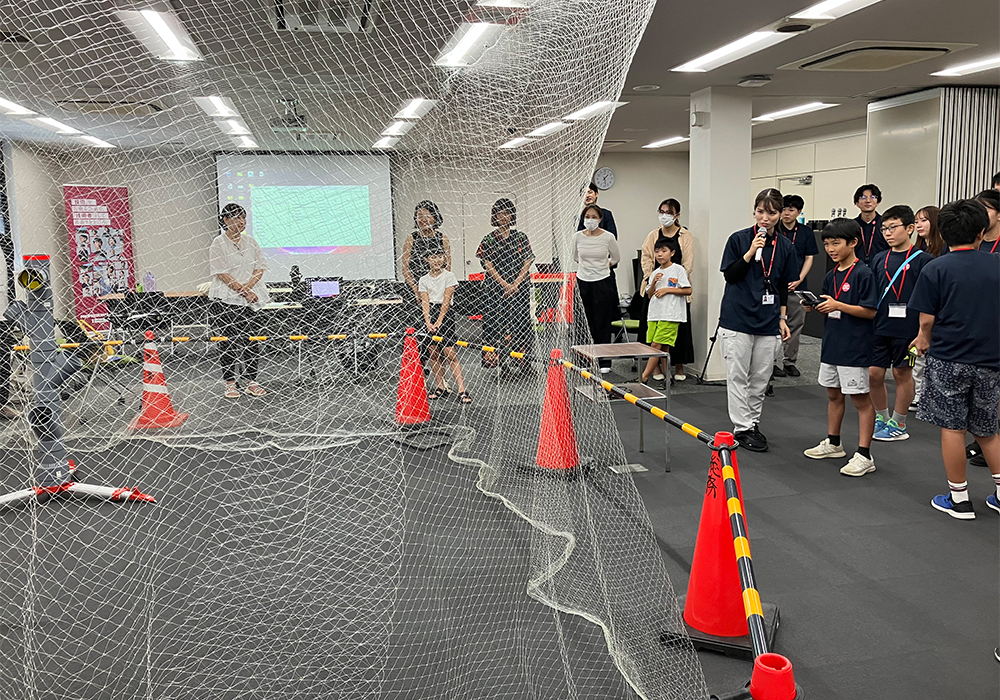 多数のご応募の中から抽選で選ばれた小学生5名と保護者の皆さまをお迎えし、ドローンの飛行体験や3DCADを使った街づくりなど、最新技術を体験していただきました。